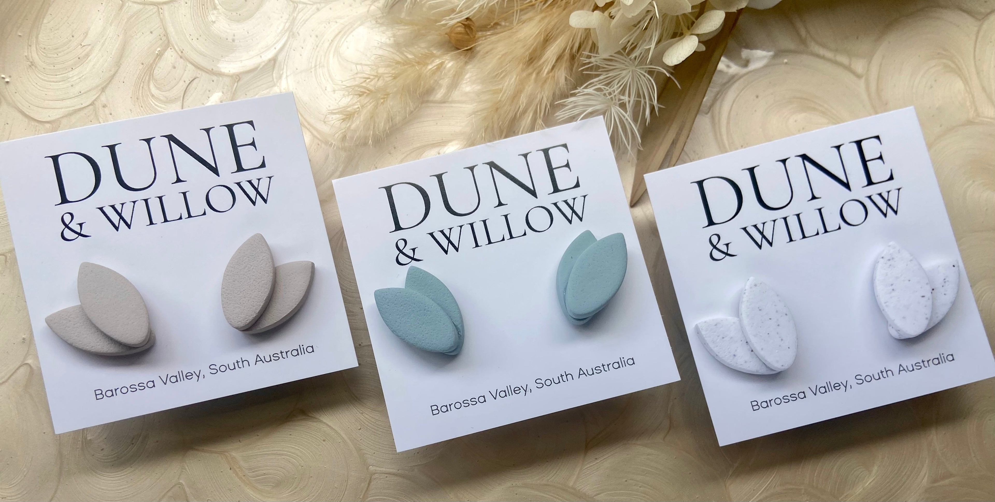At Dune & Willow we design earrings for women who find beauty in simplicity -feminine pieces that feel effortless, considered, and quietly special. Made by hand in the Barossa Valley, South Australia, each pair is crafted in small batches using lightweight polymer clay and surgical grade stainless-steel posts.