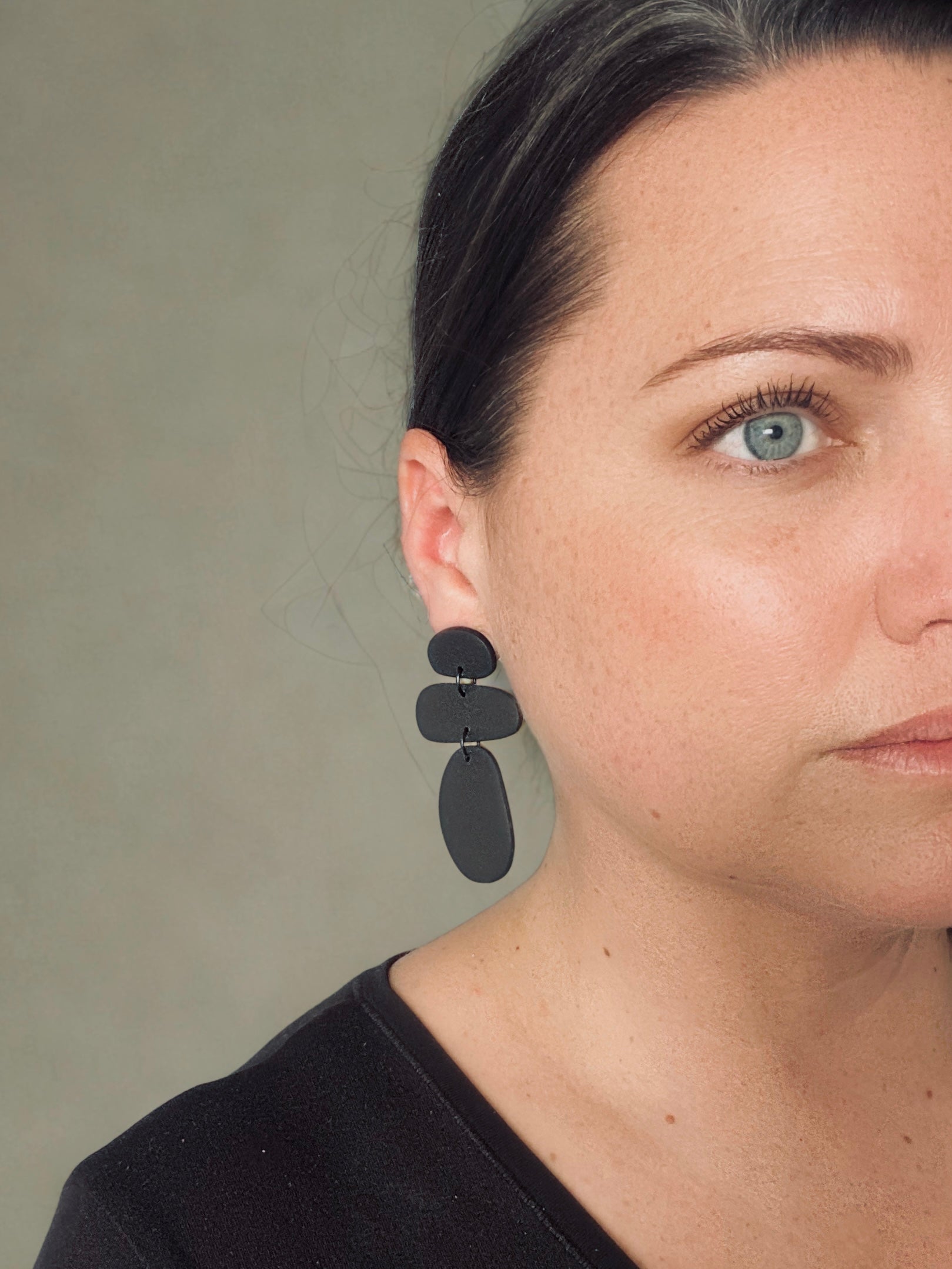 Our Pebble Dangles are designed for the woman who loves making a statement without the weight. At 7cm long, their softly sculpted, organic shapes bring a natural, effortless beauty. Each piece is hand-formed from polymer clay and finished with a delicate texture that gives just the right amount of interest. Rose gold jump rings connect the pieces with a touch of warmth, while hypoallergenic surgical stainless-steel posts and comfort backs mean you can wear them from morning to night without a second thought.
